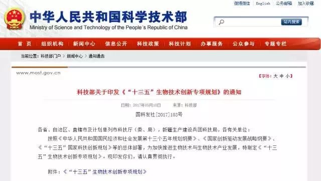 2017.05.10::“十三五”生物技术创新专项规划发布