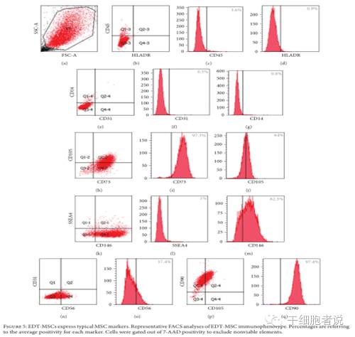 不同来源的MSC的表面标记比较 备注:BM -MSC:骨髓MSC;PB-MSC:外周血MSC;DPSC:牙髓基质细胞;UC-MSC:脐带MSC;AT-MSC:脂肪组织MSC;EDT-MSC:经血子宫蜕膜组织MSC