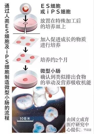 日本国立成育医疗研究中心等团体通过人类的ES细胞(胚胎干细胞)及iPS细胞(诱导性多能干细胞),成功制造出长约1厘米的肠道,并确认其发挥着营养吸收等机能。 据悉,这是首次确认到上皮、肌肉和神经等细胞互相作用、发挥机能的模样。 虽然在此之前通过ES细胞及iPS细胞制造出了可吸收营养的上皮部分,但却没能重现肌肉和神经的细胞相互关联的肠道运动。 在对培养人类ES细胞后制成的“微型小肠”进行分析研究时,观测到类似收缩继而排出食物的“蠕动”举动,还确认到吸收蛋白质的机能。此外,通过人类的iPS细胞也成功制造出同样的组织。 据报道,该“微型小肠”能够反复进行肠道特有的收缩舒张运动,对止泻和便秘药物也有反应。这是世界上首次制作出与活体有相同机能的肠道组织。 如果使用该组织可以再现疾病的症状,有望对溃疡性大肠炎和克罗恩病等肠道疑难疾病的研究和治疗药物开发带来帮助。 该中心部长阿久津英宪称:“将来还希望有助于人工移植微型小肠的再生医疗。” 据悉,研究小组对培养皿进行加工使其有利于细胞培养。在向iPS细胞和ES细胞中添加蛋白质培养后,经过约两个月细胞自然生成呈球状。肠道内壁的细胞、神经和肌肉等已成功发育,有吸收营养和药物以及分泌液体的能力。 研究人员向小肠投放便秘药物后肌肉运动开始活跃,而投放止泻药后运动放缓,发现了与活体小肠有相同的效果。